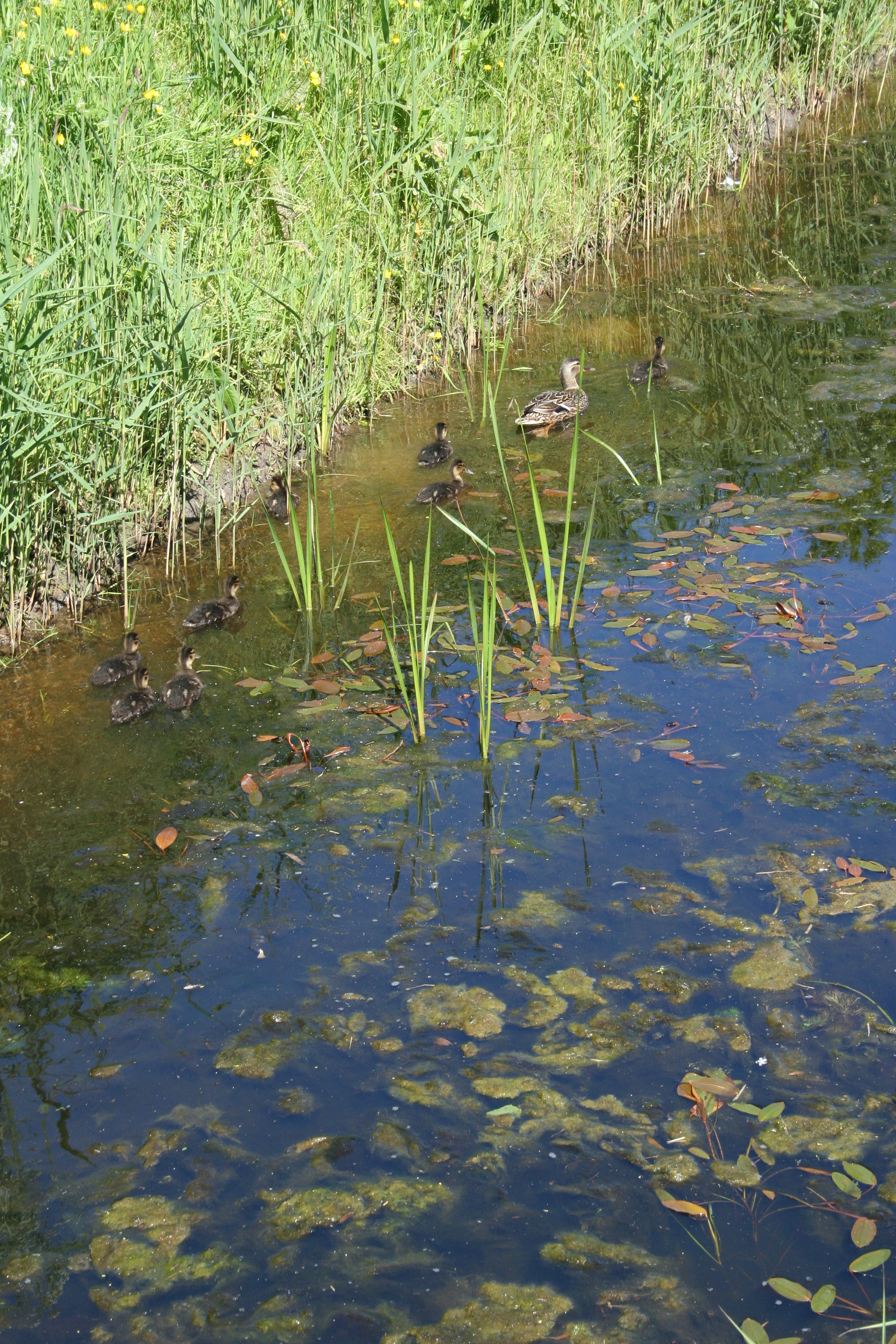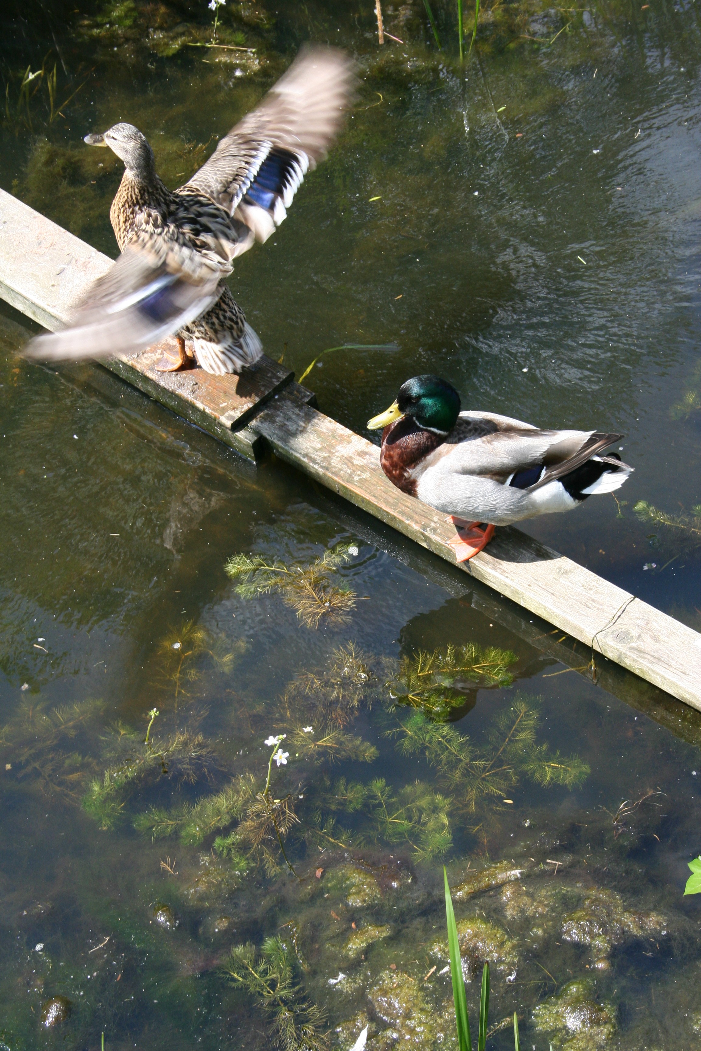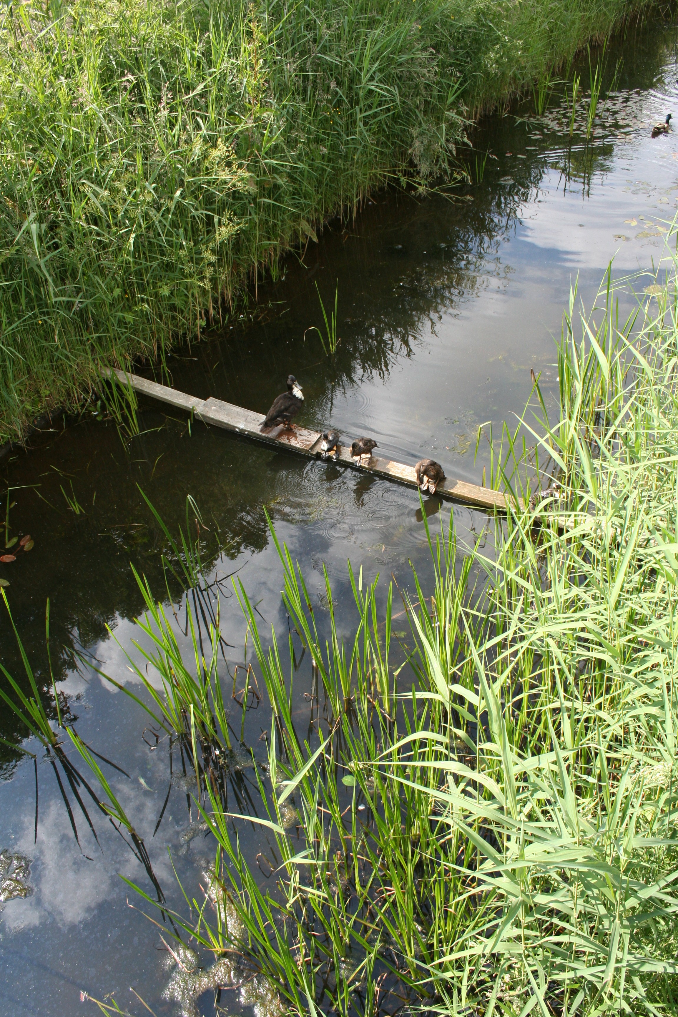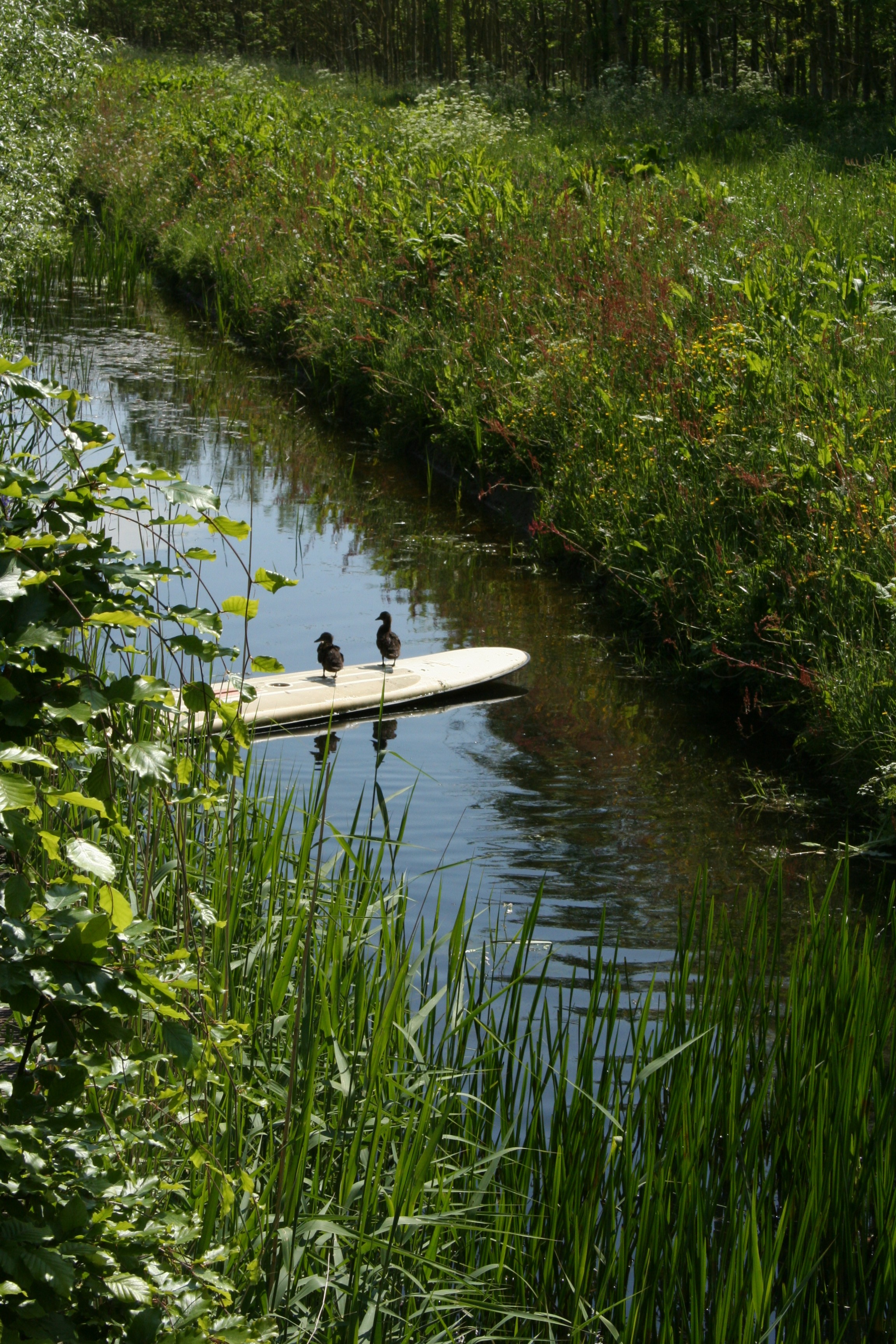 Twee citroengele vlinders dansen door de tuin. Verderop, in de sloot, hoor ik een eend z’n vleugels uitslaan. Spetter-klap-spetter-klap. En dan een plons: